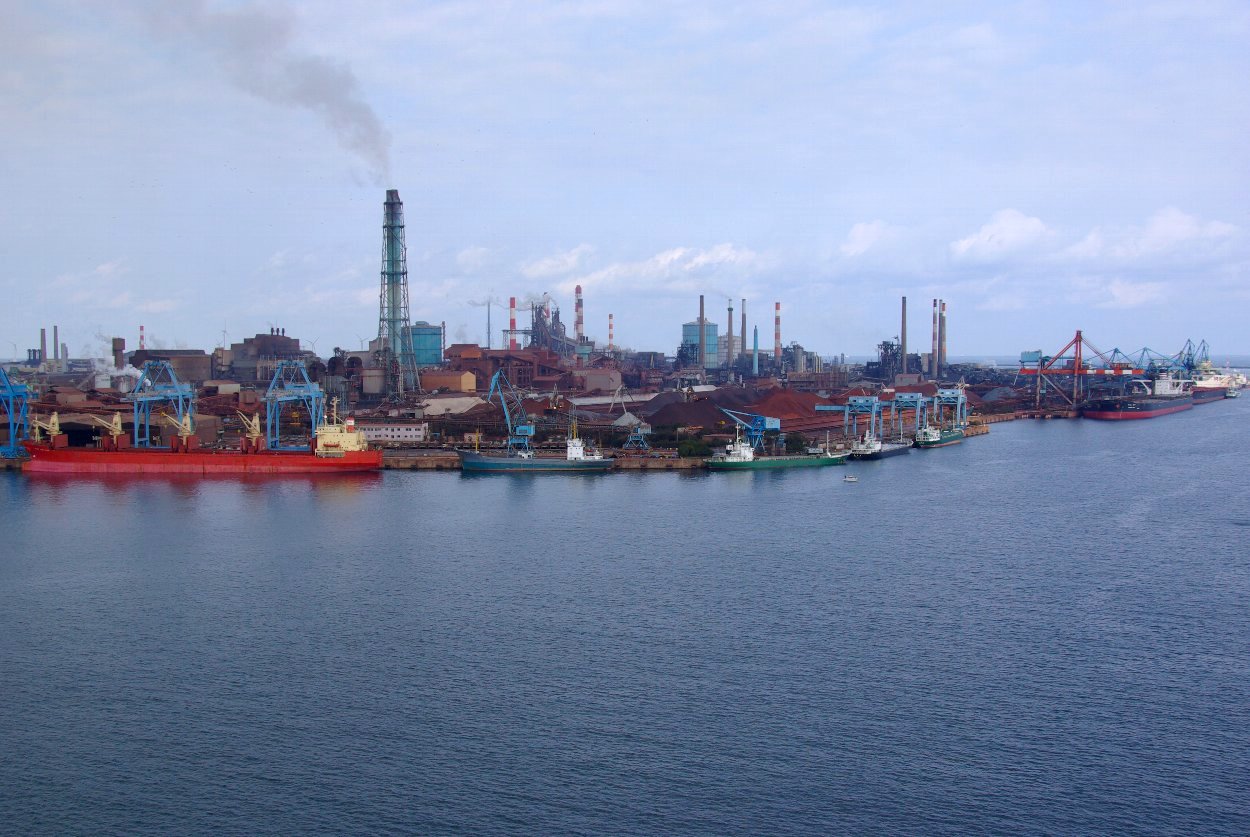 人工の掘り込み式の港で、重工業の工場が密集しています。