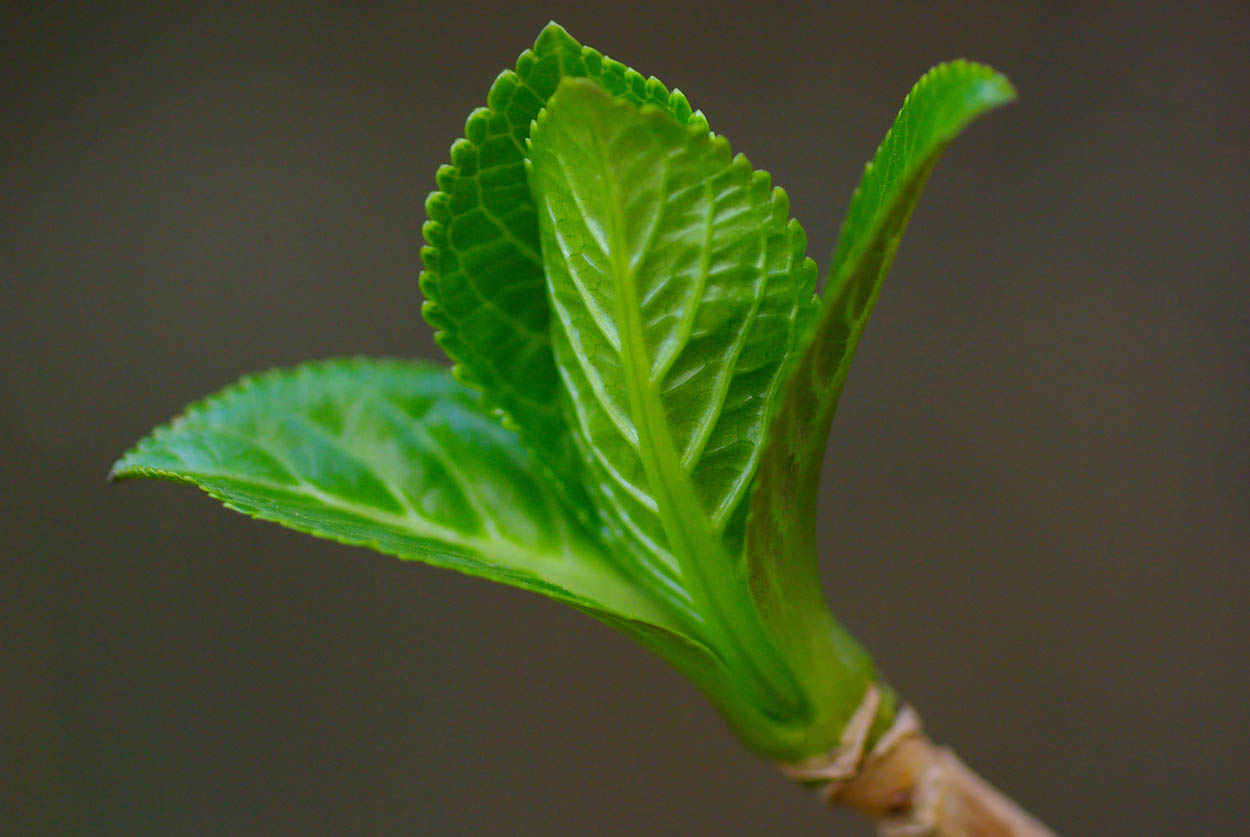 新芽の緑がみずみずしいです。