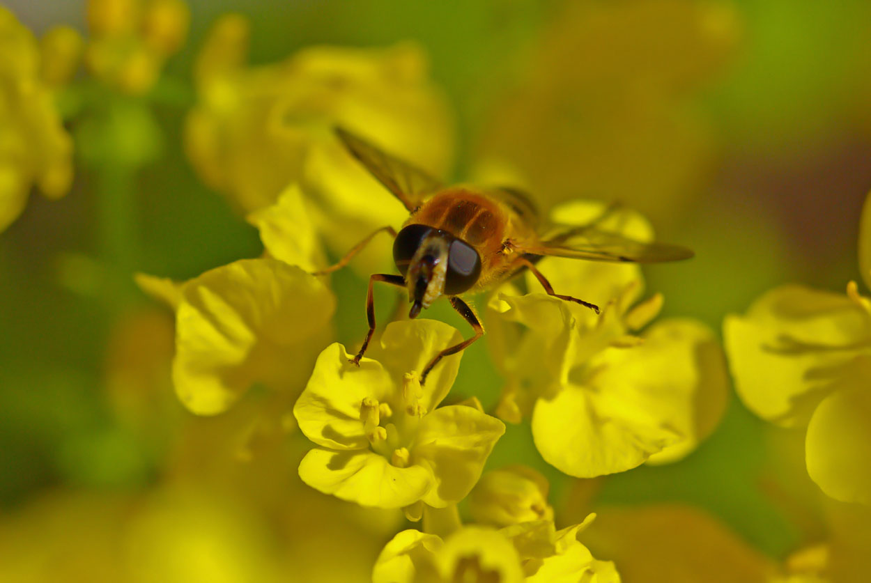 撮っていたら虻が菜の花の蕊の花粉を食事中でした。インターネ