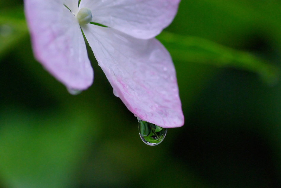 梅雨のほんの合間や小降りの時に、花や葉に付いた雨滴を撮影しました。