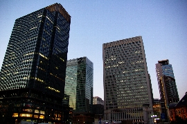 203.夕暮れどきの丸の内のビル街