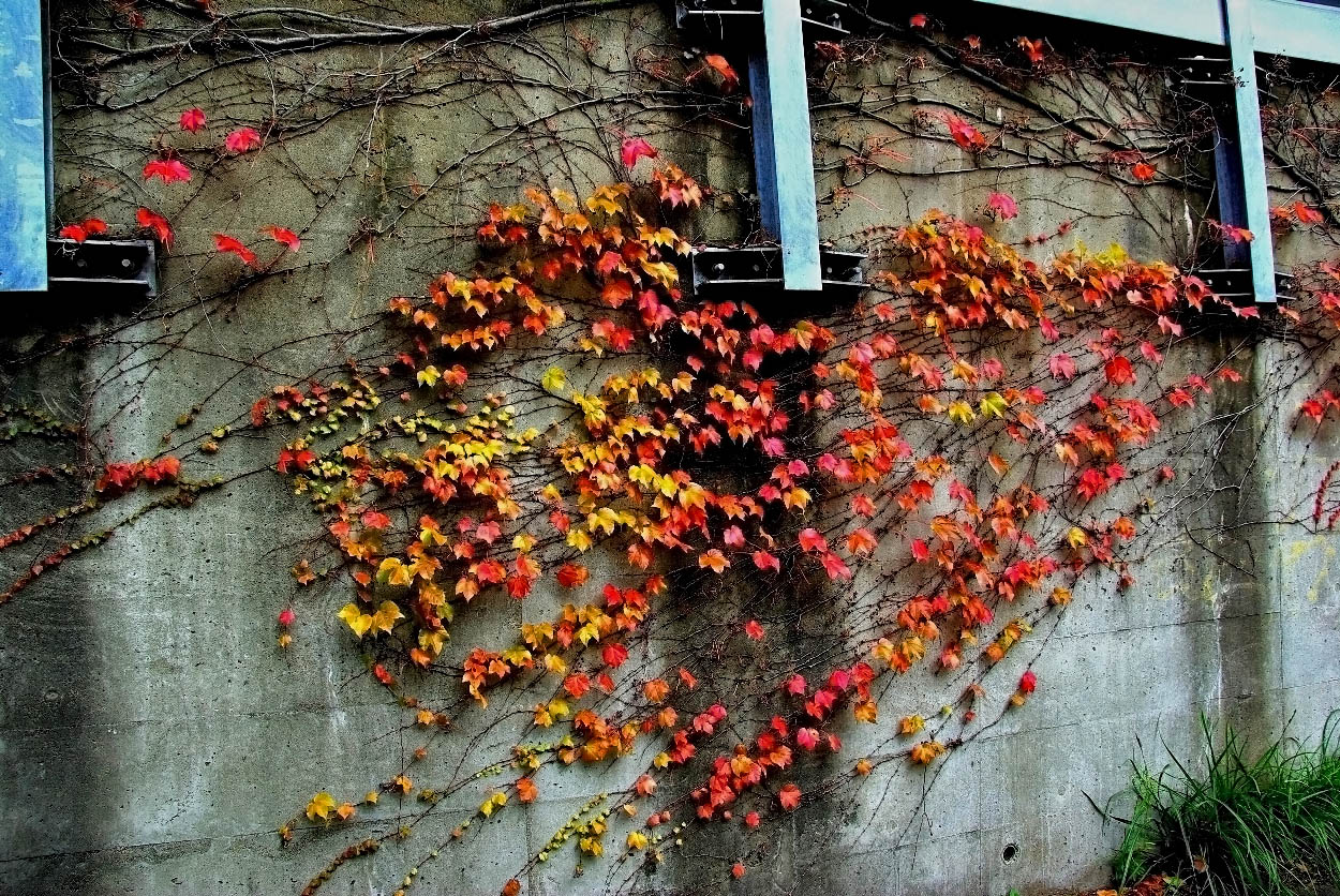 289.コンクリートの壁の紅葉