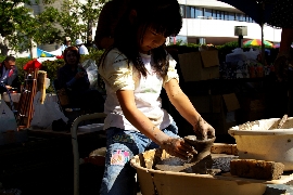 いろいろな出店の中に金魚すくいと陶芸体験の店がありました。(No.262〜270)。