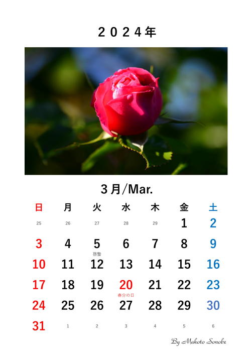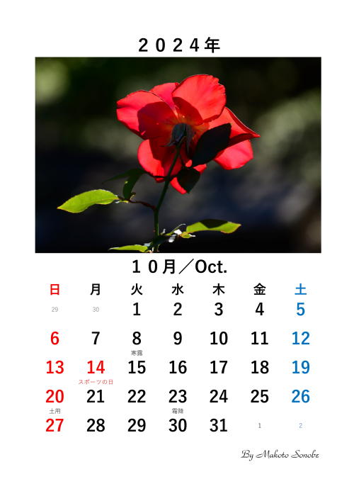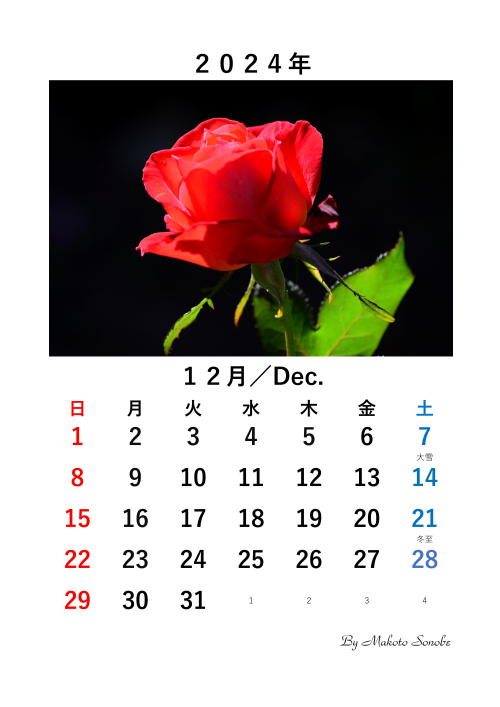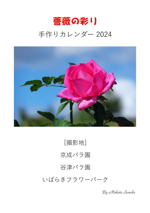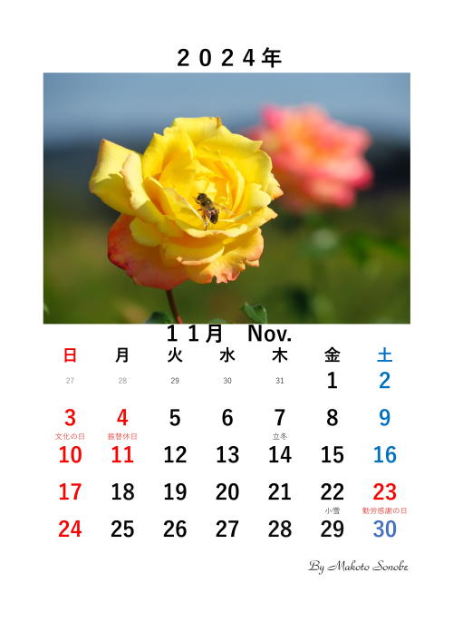 --------------------------------------------------------------------------------------------------------[2023.12.14. 菜の花の開花] 我が家の庭で、はや、菜の花が開花しました。 撮影日:2023.12.14. カメラ: ニコン7D610 レンズ:Tamron 180mm Macro6093 6092 ---------------------------------------------------------------------------------------------------------[2023.12.10. 2024年 手作りカレンダー] 今秋撮ったバラの花の写真を入れたカレンダーをエクセルで作成しました。 もし希望される方は自由にダウンロードしてくださって結構です。6091 6090 6089 6088 6087 6086 6085 6084 6083 6082 6081 6080 6079 6078 6077 6076 6075 ------------------------------------------------------------------------------------------------------------![]()