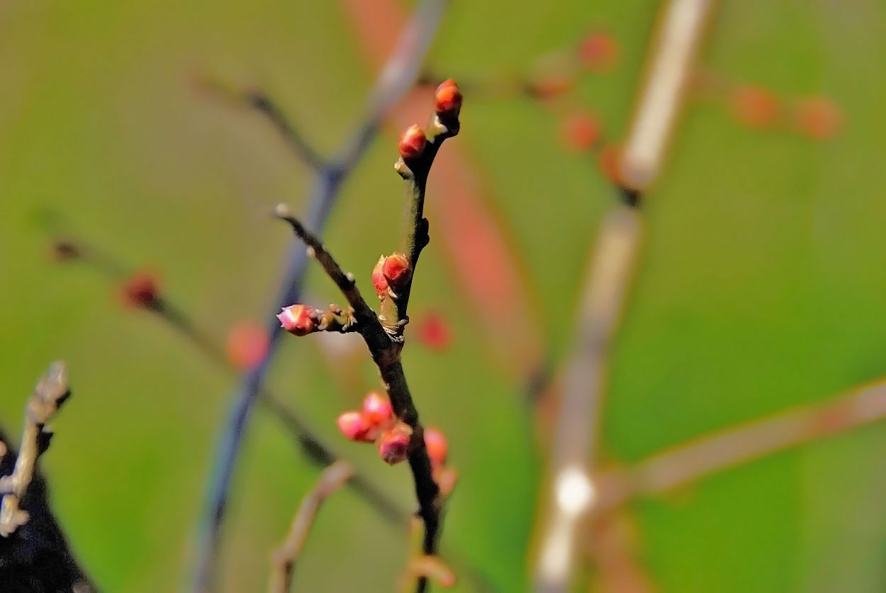 梅の木はもう蕾をつけています。これから厳しい寒さに耐え抜いて来春に花を咲かせるのですね。
