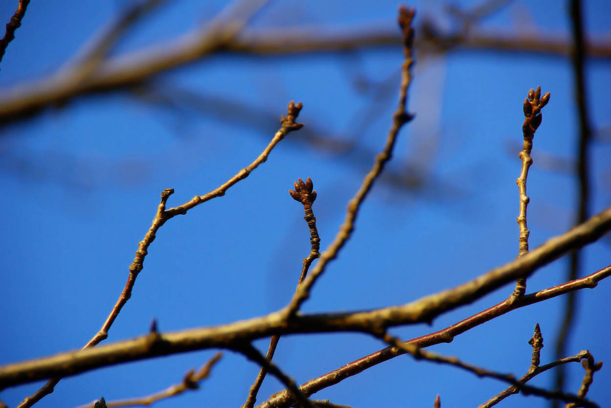 葉を落とす木の枝は季節感をよく表しますね。
